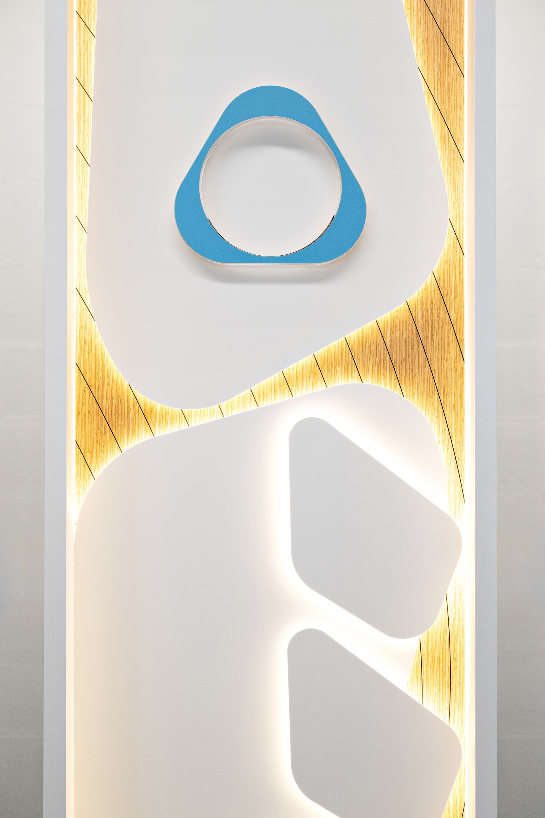 Développement, production et installation d’éléments de merchandising visuel alliant formes organiques et finitions haut de gamme. Réalisation d’un mur en vagues rétroéclairé pour une mise en valeur dynamique des produits et de comptoirs d’exposition en bois laqué aux lignes arrondies, intégrant des surfaces de présentation optimisées. Développement et mise en place de structures murales et podiums en bois avec éclairage intégré, créant une mise en scène immersive et épurée des produits.